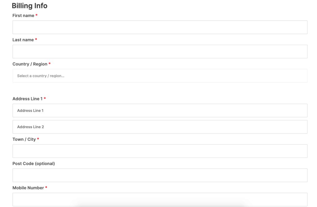 After clicking “Proceed to checkout” you will be asked to insert your billing information, such as name and surname, address…